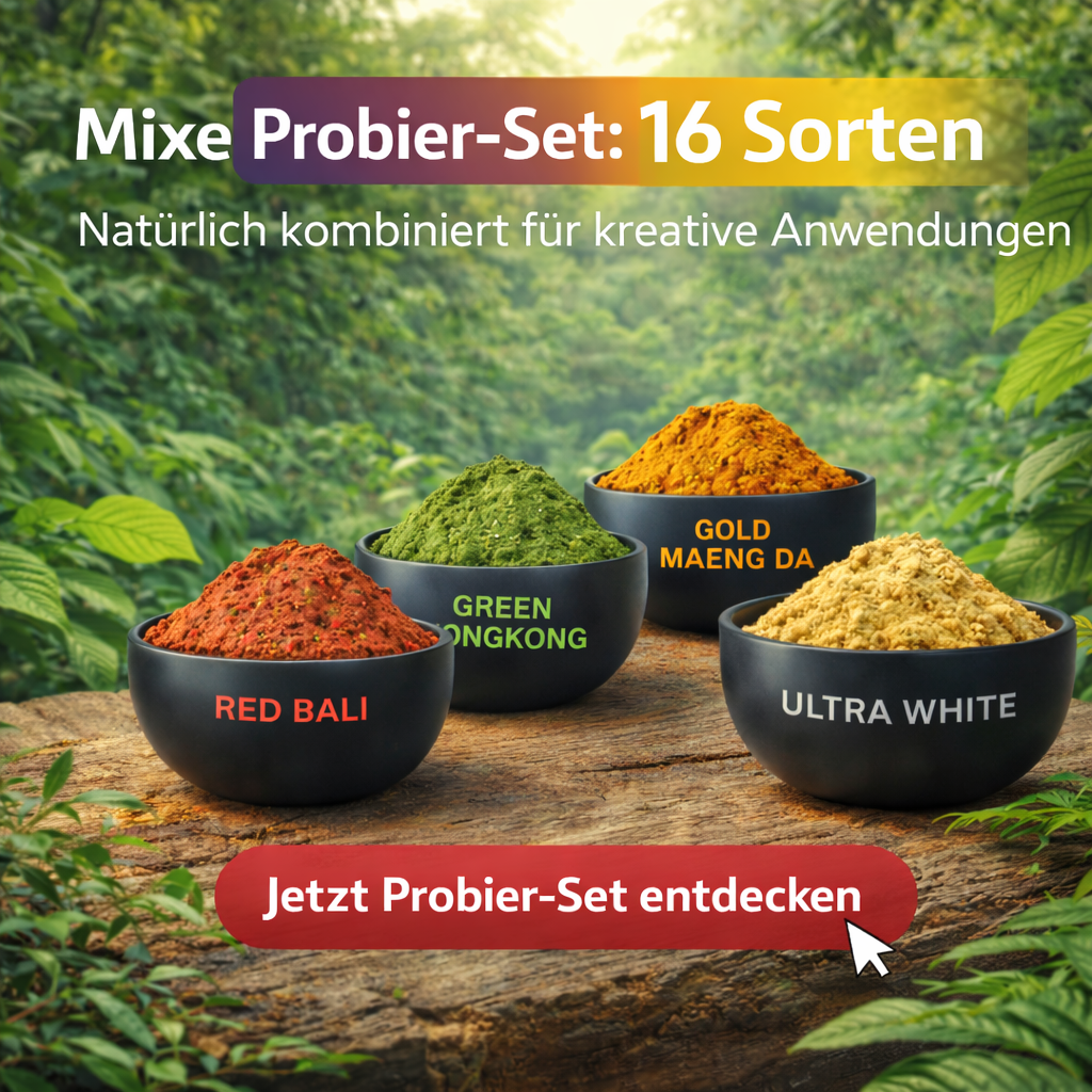Unser Kratom wird ausschließlich als Färbemittel bzw. Sammlerware angeboten. Wir handeln strikt im Rahmen der geltenden gesetzlichen Vorgaben und verzichten konsequent auf irreführende Aussagen oder Wirkversprechen.